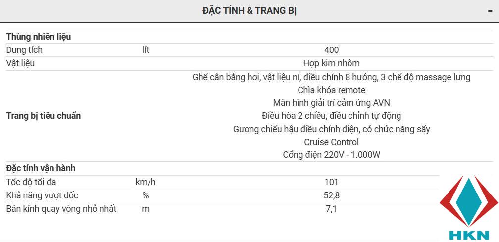- Chìa khóa remote, Cruise Control (ga tự động) và cổng điện 220V – 1.000W tiện lợi cho sinh hoạt cá nhân.