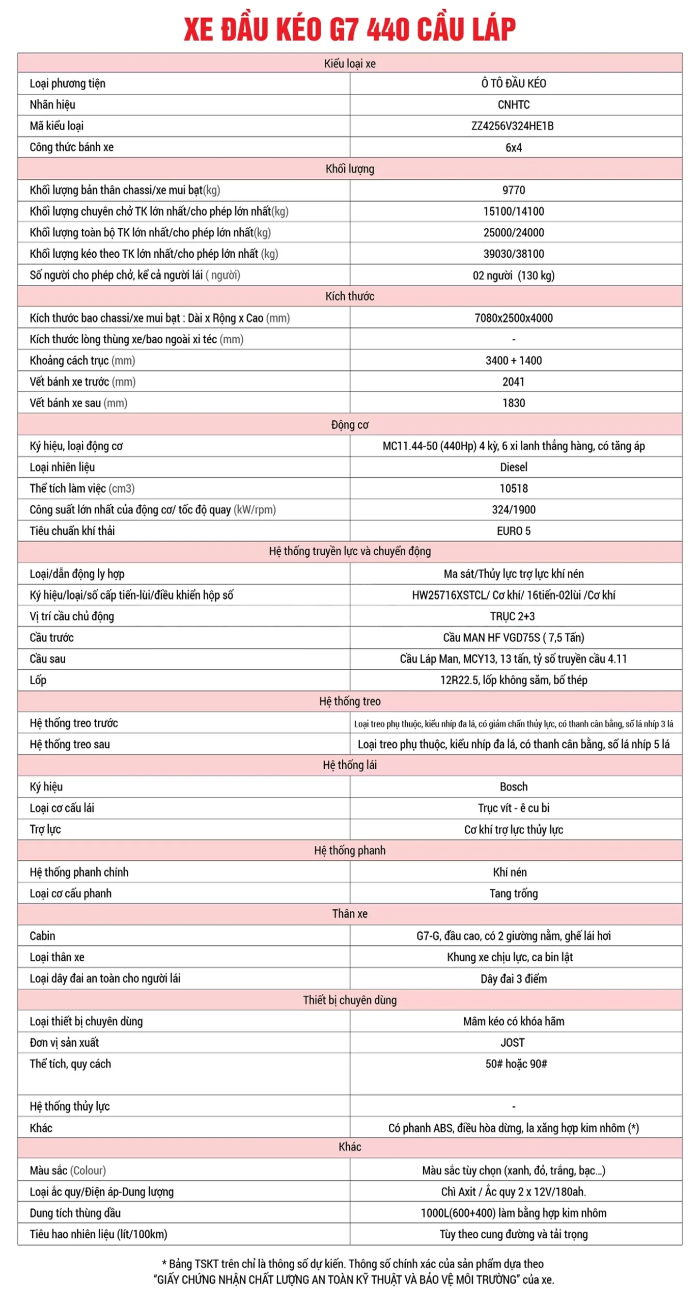 Chúng tôi tự hào mang đến chương trình bảo hành 3 năm không giới hạn ki-lô-mét cho dòng xe đầu kéo G7 540 Cầu Dầu (áp dụng với tất cả dòng xe kéo từ thời điểm bàn giao xe). Đây là lời cam kết mạnh mẽ về chất lượng và độ bền của sản phẩm.