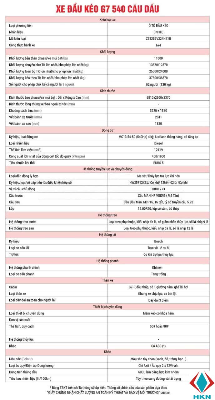 Chào mừng quý khách đến với siêu phẩm xe đầu kéo SINOTRUK G7 540 Cầu Dầu – biểu tượng của sức mạnh, sự bền bỉ và đẳng cấp trong phân khúc xe hạng nặng. Được thiết kế dành riêng cho những nhiệm vụ vận tải siêu trường, siêu trọng, G7 540 Cầu Dầu không chỉ là một chiếc xe, mà là một đối tác đáng tin cậy, mang lại hiệu suất vượt trội và giá trị kinh tế lâu dài.