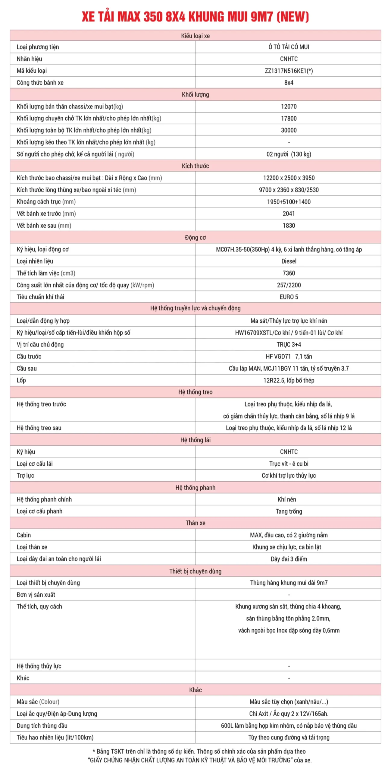 Xe Tải HOWO MAX 350 8X4 Khung Mui Nhập Khẩu 9m7 thực sự là một khoản đầu tư xứng đáng cho các doanh nghiệp vận tải. Với tổng thể thiết kế hiện đại, nội thất tiện nghi, phối bộ động lực mạnh mẽ và thùng hàng chất lượng cao, chiếc xe này sẽ đồng hành cùng bạn trên mọi nẻo đường, mang lại hiệu quả kinh tế vượt trội.